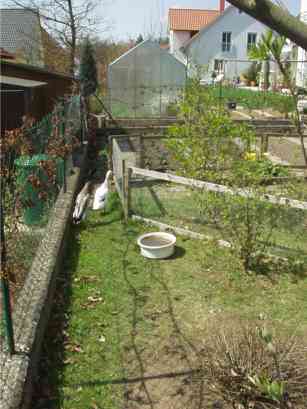 Angeschafft haben wir uns gerade diese Sorte, weil es in unserem Garten zu viele Schnecken gab. Die Enten können sich im Weiher, im Gemüsegarten und auf dem Komposthaufen frei bewegen. An der Grenze des Gartens entlang ist für unsere Laufenten eine "Laufstrecke" durch einen 50 cm hohen Zaun abgetrennt. So ist unser Garten rund herum gegen Schneckenangriffe gesichert.